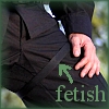 Description: Black-clad thigh with a thigh-strap, caption 'fetish'